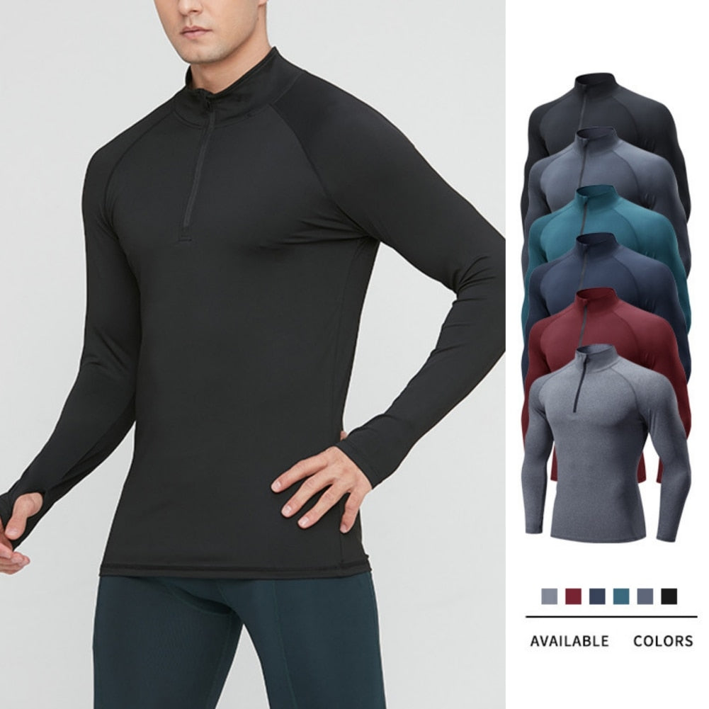 【Quarter Zip Collar Design】This athletic long sleeve pullover shirts design with quarter-zip stand-up collar which can protect skin from sunburn in the sun. Smooth, cool, high elastic,quick dry.
