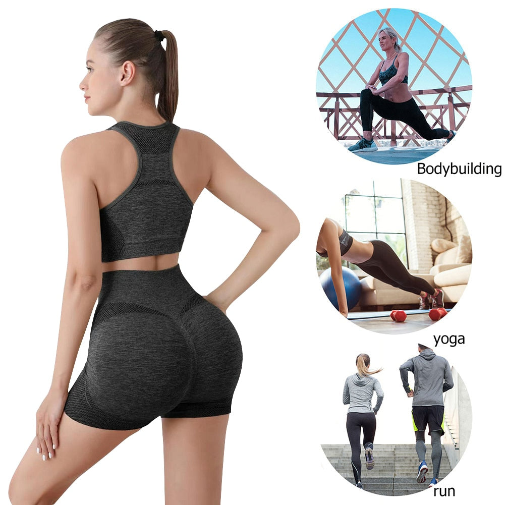 Women Fitness Clothes Set Polyester Seamless Running Training Clothes Lightweight Breathable Wearable Shockproof Sporting Goods